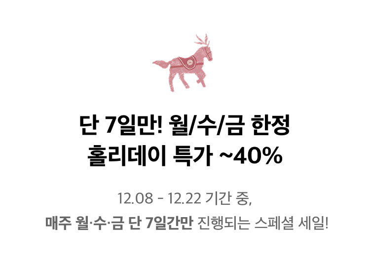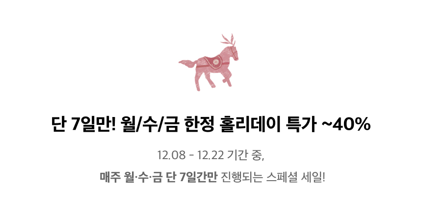 12월 8일부터 12월 22일까지 기간 중, 매주 월/수/금 단 7일간만 진행되는 스페셜 세일!